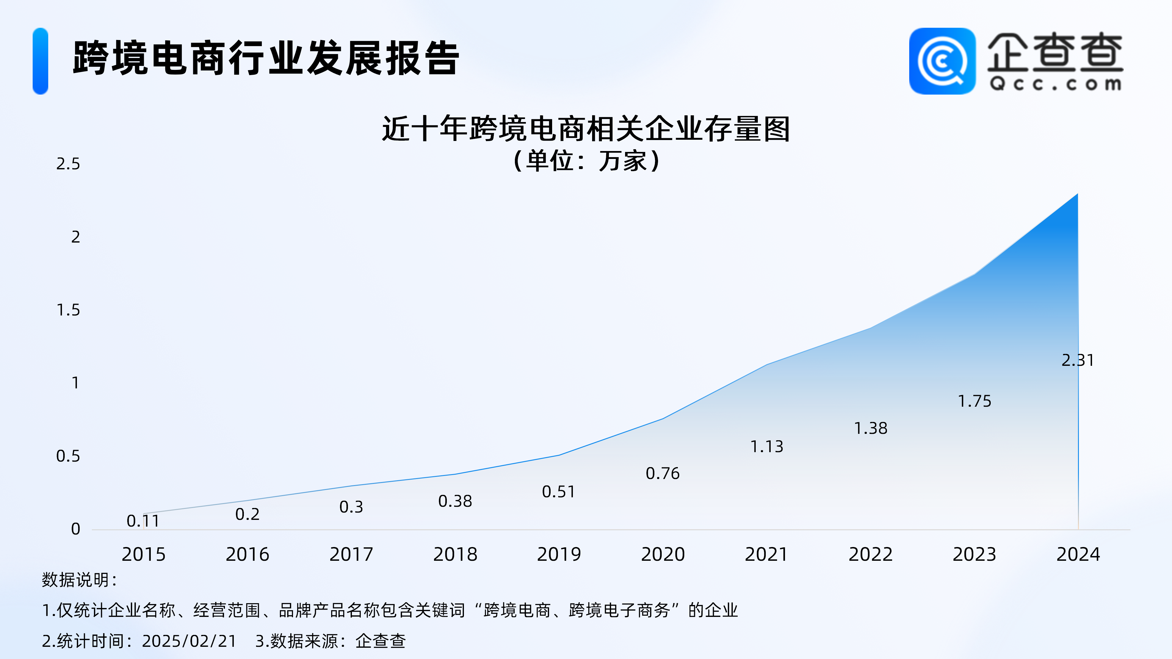 企查查數據顯示,截至2月21日,國內現存跨境電商相關企業(僅統計企業名稱、經營范圍、品牌產品含關鍵詞“跨境電商”、“跨境電子商務”的企業)2.42萬家。