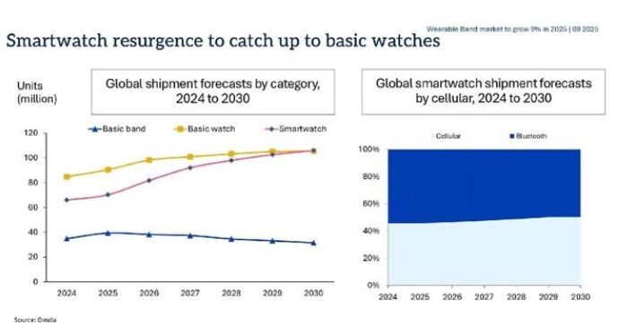 Omdia今日發布最新研究,全球可穿戴腕帶設備市場正在蓬勃發展,2025年第二季度,出貨量達5020萬臺,同比增長13%。報告稱,對入門級基礎設備的強勁需求,加上更先進的追蹤功能,正在推動市場擴張。Omdia預測,2025年市場將增長8%,2026年預計將達到9%的增長。
