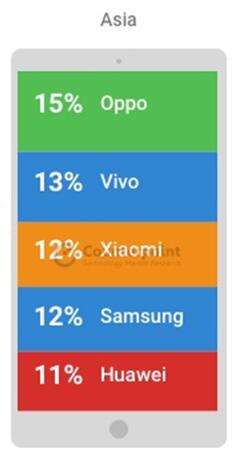 然而,回顧過去一年,OPPO的市場表現(xiàn)依然令人矚目。目前,第四季度數(shù)據(jù)尚未出爐,但市場數(shù)據(jù)調(diào)研公司Strategy Analytics報告顯示,2017第一季度和第二季度OPPO都保持了迅猛的增長勢頭,成為增速最高的手機品牌。而到了第三季度,OPPO已經(jīng)成為亞洲地區(qū)手機出貨量的第一名。