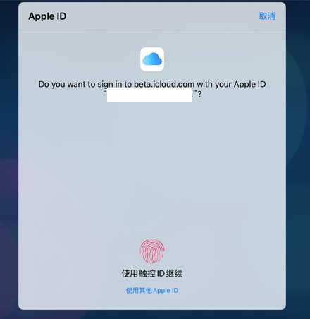▲使用Touch ID登錄beta.icloud.com的iPadOS