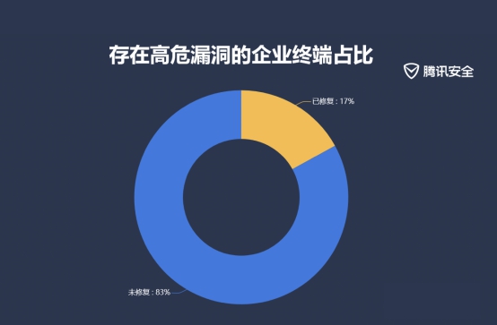 (圖:未修復(fù)高危漏洞的企業(yè)終端比例達(dá)83%)