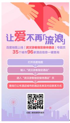 百度地圖根據(jù)武漢市文化和旅游局官方發(fā)布信息,于1月29日特別緊急上線了“武漢游客指定接待酒店” 專題頁面,聚合來自各地的集中接待信息,方便在外的武漢及湖北游客更快找到所在城市的指定接待酒店。截至目前,百度地圖已上線了35個城市96家指定接待酒店,并將持續(xù)跟進最新信息,充分發(fā)揮平臺信息整合優(yōu)勢,保障人民的生命健康安全。