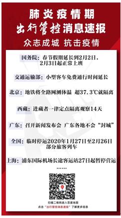 為便利公眾了解肺炎疫情實時消息、掌握各地出行路線封堵情況、獲取就診信息與服務(wù),百度地圖于1月27日(大年初三)上線“肺炎疫情期出行管控消息速報”頁面。該頁面實時更新疫情最新消息動態(tài),聚合疫情期百度地圖駕車出行、公交出行、旅游休閑、遷徙地圖、發(fā)熱門診查詢、湖北籍游客定點酒店、全國路況平臺等功能入口。用戶通過百度地圖首頁上方的黃條提示,即可進入該聚合頁面,及時獲取疫情相關(guān)信息,并依據(jù)頁面標(biāo)識指引快速找到所需出行、就診等功能服務(wù)。
