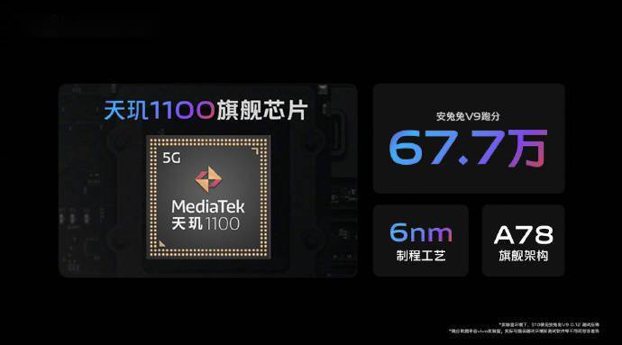 天璣 1100 在安兔兔V9跑分中,跑分達到67.7萬