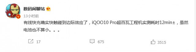 據(jù)知名數(shù)碼博主@數(shù)碼閑聊站 最新發(fā)布的信息顯示,與此前曝光的消息基本一致,全新的iQOO10Pro將搭載更強(qiáng)悍的快充技術(shù),有望成為首款支持200W快充的旗艦機(jī)型。同時(shí)該博主表示,雖然電池容量不算小,但該機(jī)的工程機(jī)在內(nèi)部充電實(shí)測(cè)中充滿電耗時(shí)僅12+min,對(duì)比IQOO上一代機(jī)型提升依然是十分明顯的。