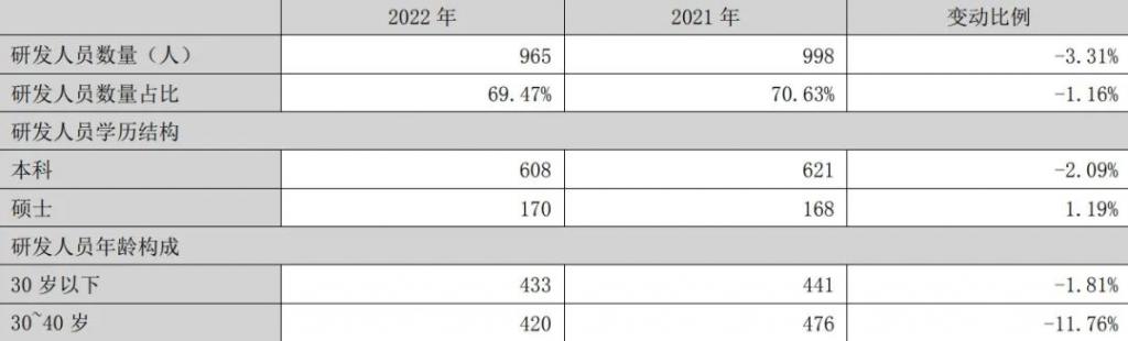 AI 能力的強弱與研發投入息息相關,而研發投入恰恰是巨人網絡的短板:2017 年的研發費用為 6.288 億,到了 2022 年為 6.426 億,幾乎毫無增長;2017 年的研發人員尚有 1661 人,到了 2022 年為 965 人,縮水幅度為 41.90%。