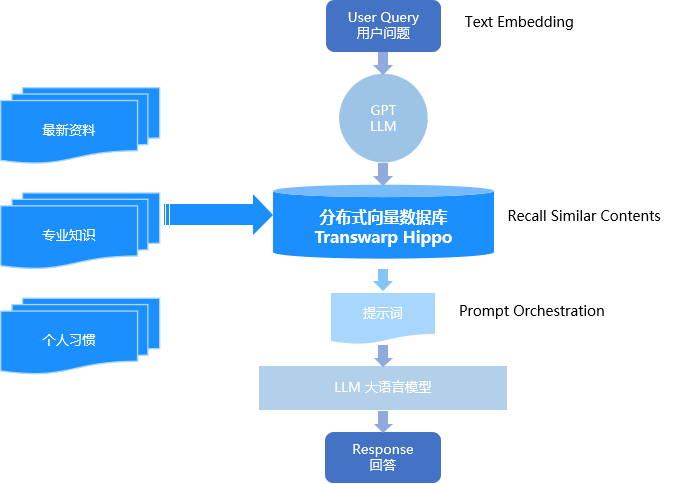 基于星環分布式向量數據庫Hippo,可以有效地解決大模型在知識時效性低、輸入能力有限、準確度低等問題。通過將最新資料、專業知識、個人習慣等海量信息向量存儲在星環分布式向量數據庫Hippo中,可以極大地拓展大模型的應用邊界,讓大模型保持信息實時性,并能夠動態調整,使大模型擁有“長期記憶”。
