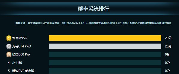 此次半年報(bào)排行,九號(hào)以696分的得分位居榜首,其中九號(hào)遠(yuǎn)航家M95c、機(jī)械師MMAX110P都有著不俗的實(shí)力,尤其遠(yuǎn)航家還在單車(chē)分?jǐn)?shù)上超過(guò)機(jī)械師,刷新了魯大師智慧電動(dòng)車(chē)排行榜單。