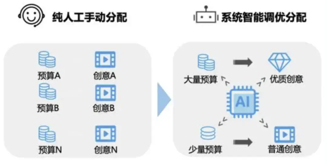 智能化營銷的到來,摒棄了過去漏斗式的結(jié)構(gòu),用端到端的方式讓整個廣告系統(tǒng)變的更直接,中間的創(chuàng)意、決策過程都交給大模型,用扁平的方式減少成本消耗。