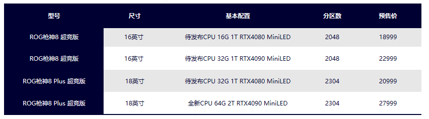據(jù)了解ROG槍神8 超競版系列新品將于1月9日開售,不同型號產(chǎn)品預(yù)售價(jià)如下: