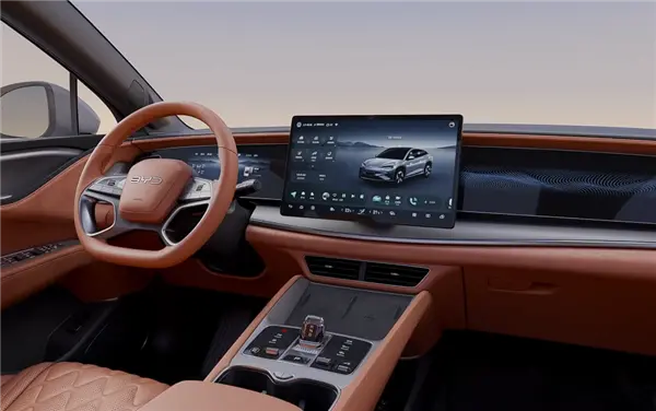 新車尺寸為4830*1925*1620mm,軸距2930mm,為中型SUV標準,內飾采用比亞迪最新的設計語言,和日前公布的秦L類似,中控為一體化設計,全液晶儀表盤鑲嵌其中,同時還配備了可旋轉的懸浮式Pad。