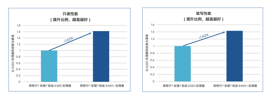 比如PingCAP推出的TiDB開源分布式數(shù)據(jù)庫(kù)就得益于第四代英特爾® 至強(qiáng)® 可擴(kuò)展處理器卓越的代際性能,其數(shù)據(jù)庫(kù)的只讀性能與讀寫性能分別達(dá)到基準(zhǔn)配置的1.62倍與1.43倍。
